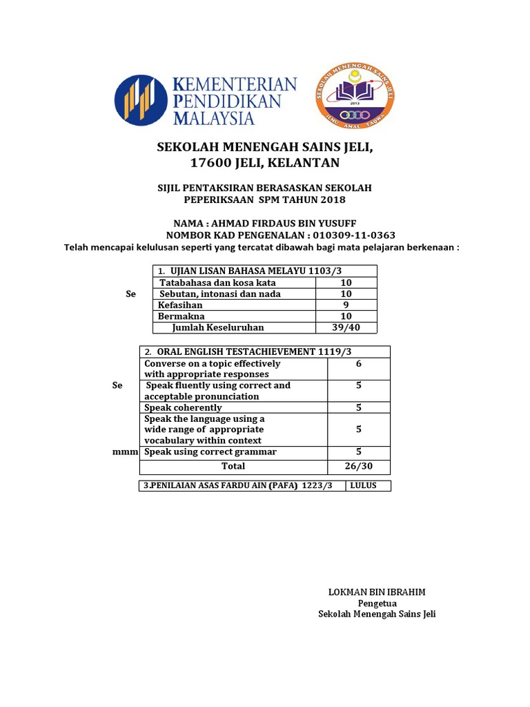 Sijil Bm Dan Bi Dan Pafa 2018 5 Marikh Pdf